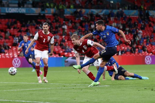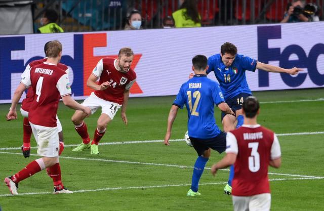 如果说上半时意大利人还在相信攻破对方球门只是时间问题,到了下半时,奥地利开始加强攻势,意大利不得不担心自己被爆冷。奥地利确实有过机会,例如阿拉巴在禁区前沿的任意球射门,或者是阿瑙托维奇被VAR取消的进球。奥地利队甚至要求过1次点球判罚,但主裁判判奥地利球员越位在先。